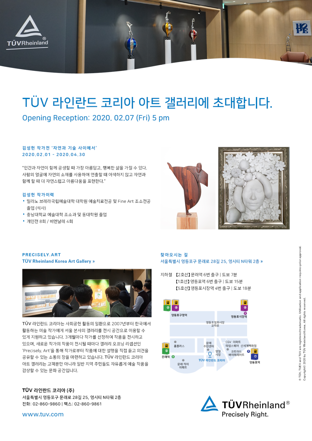 TUV 라인란드 코리아 갤러리는 TUV 라인란드 관계자 뿐만 아니라 일반 지역 주민들도 자유롭게 예술 작품을 감상할 수 있는 문화 공간입니다.