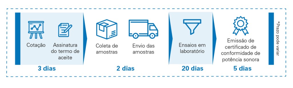 Para a certificação de potência sonora em eletrodomésticos no Brasil, é obrigatório a verificação do ruído emitido pelo equipamento ao meio ambiente. A TÜV Rheinland realiza este processo para emissão do selo de conformidade de potência sonora (selo ruído).