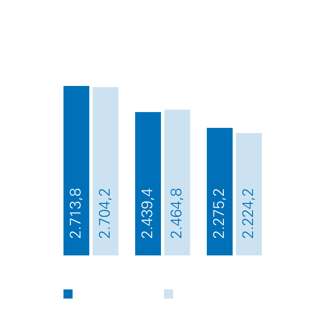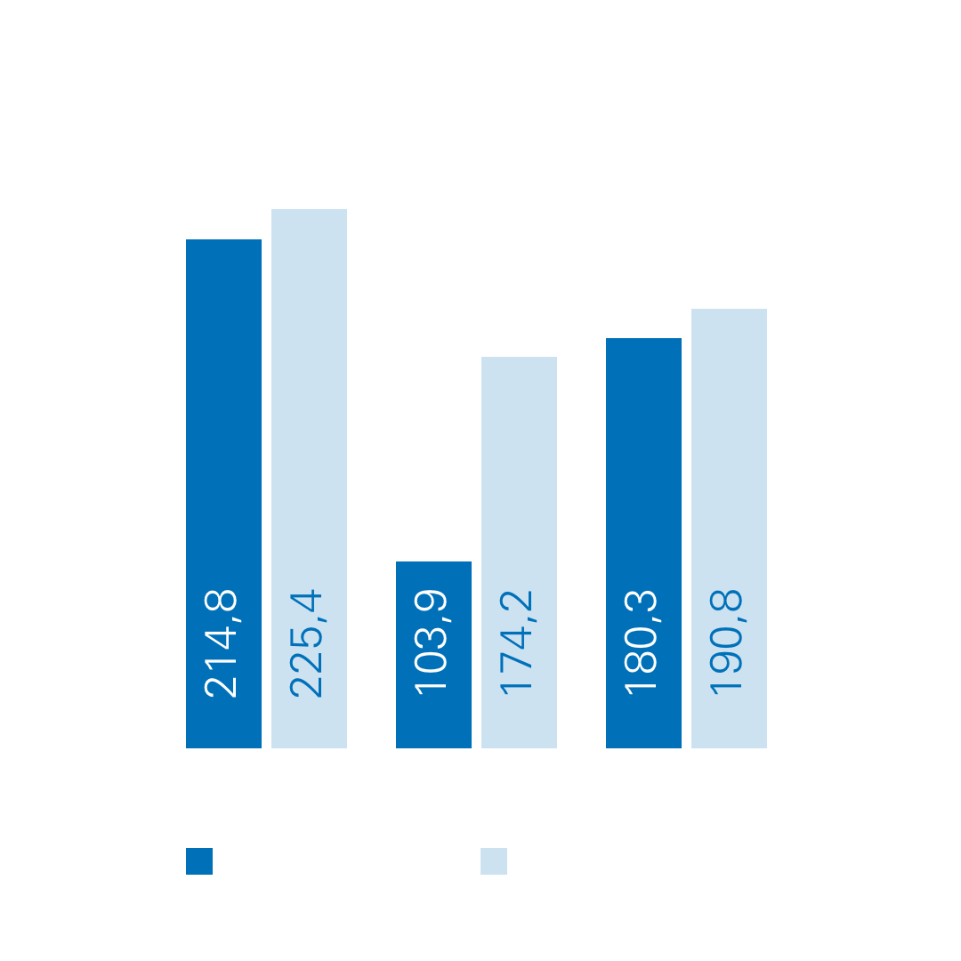 Das Betriebsergebnis (EBIT) belief sich im Geschäftsjahr 2024 auf Mio. € 214,8 und lag damit um Mio. € 110,9 deutlich über dem Vorjahreswert. Nach Bereinigung von Sondereinflüssen von insgesamt Mio. € –10,6 betrug das bereinigte EBIT Mio. € 225,4. Die EBIT-Marge, die das EBIT ins Verhältnis zum Konzernumsatz setzt, belief sich im Geschäftsjahr 2024 auf 7,9 % und erhöhte sich damit um 3,7%-Punkte gegenüber dem Vorjahr. Das gesteckte Ziel für 2024, eine EBIT-Marge von 6,5 % bis 7,0 % zu erwirtschaften, wurde somit übertroffen. Unter Berücksichtigung der oben genannten Sondereinflüsse ergab sich eine bereinigte EBIT-Marge von 8,3 % (Vorjahr: 7,1 %).