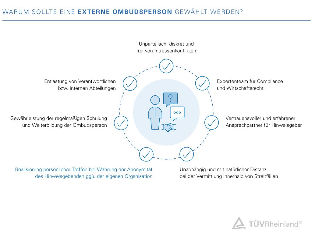 Neben der vertraulichen, fachlichen Bearbeitung, sorgt die Ombudsperson auch für den Aufbau eines Vertrauensverhältnisses zum Hinweisgeber sowie dessen Schutz der Identität.