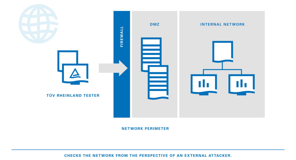 Bei einem externen Penetrationstest wird die im Geltungsbereich befindliche IT-Infrastruktur (bspw. Mailserver, VPN-Gateways oder DNS-Server) mit einer strukturieren Vorgehensweise auf Schwachstellen untersucht, die die Vertraulichkeit, Integrität oder Verfügbarkeit der Systeme negativ beeinflussen könnten. Schwachstellen werden sowohl mit Hilfe von automatischen Schwachstellenscannern als auch auf Basis von manuellen Tests und Analysen identifiziert.