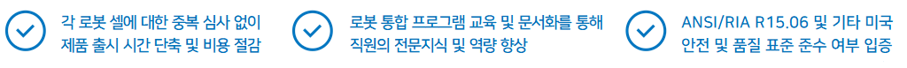 로봇 셀의 중복 시험 없이 신속하게 시장에 진입하고 비용을 절감할 수 있습니다.