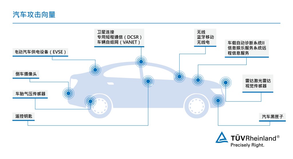威胁场景随着日益增强的连通性、自动驾驶和复杂的软件技术发生急剧变化。曾经的攻击必须在车辆中亲自发动,而如今可通过安装无线模块从互联网或其他通信接口进行攻击。