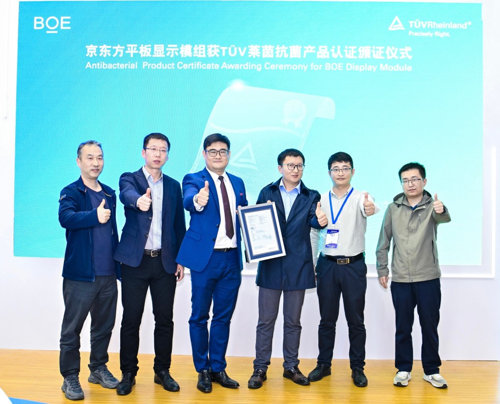 02.04.2024 TÜV Rheinland Antibacterial Product Quality Mark certificate to BOE