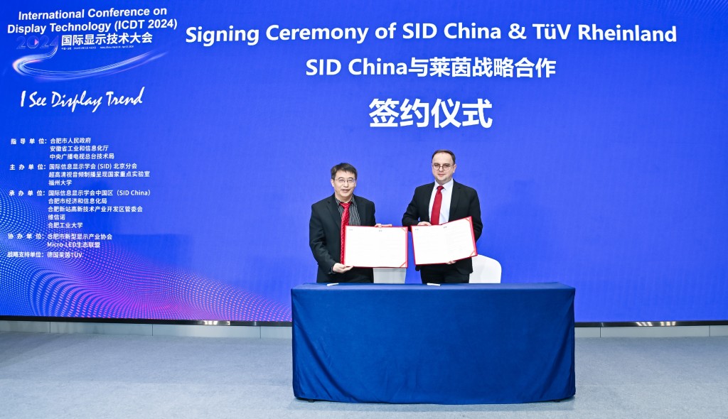 International Conference on Display Technology (ICDT 2024) was held at the Hefei Binhu International Convention and Exhibition Center. TÜV Rheinland Greater China, an international independent third-party testing, inspection and certification organization, attended this event as a strategic partner. During the event, TÜV Rheinland signed a strategic cooperation agreement with the Society for Information Display (SID), and released the Whitepaper on Screen Privacy Protection of Display Devices; TÜV Rheinland also delivered a keynote report at the Human Factor and Visual Health Special Forum, and invited strategic partners to deliver four keynote speeches.
