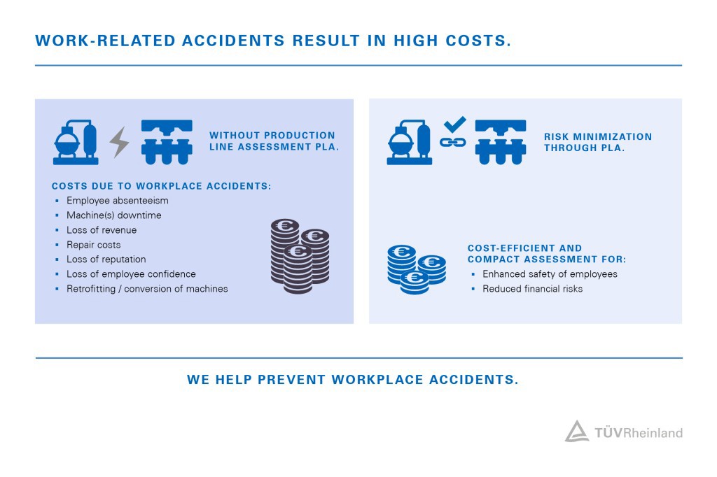 Our service "Production Line Assessments (PLA)" are compact safety tests that require significantly less time and effort than the comprehensive, multi-day inspection of a machine or complete lines. Using our proprietary machine (PLA) checklist, our experienced experts examine and evaluate all safety-relevant aspects of your equipment and lines. The testing parameters of our PLA checklist go far beyond regulatory requirements.
