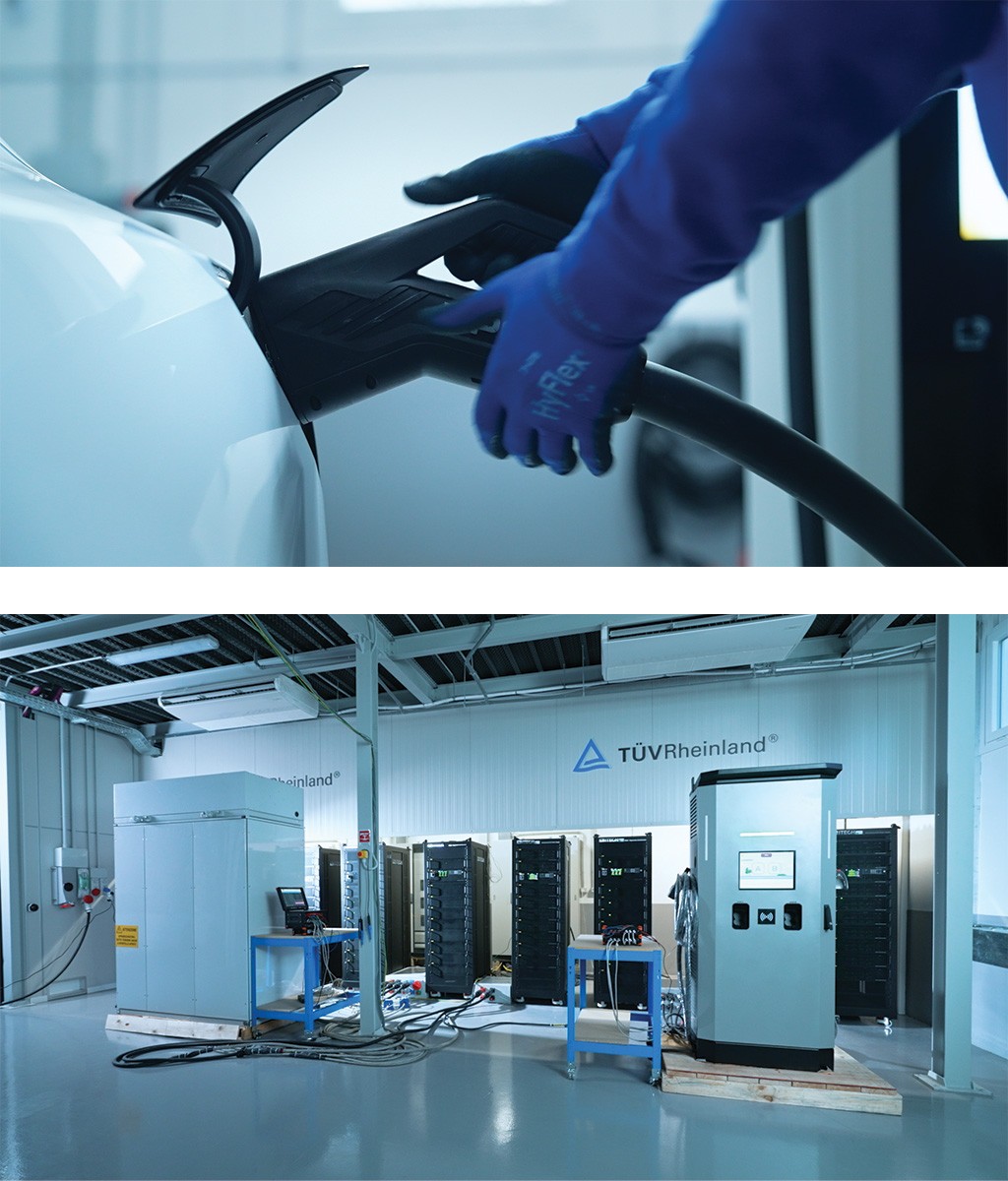 TÜV Rheinland’s new Power Test Center Cologne tests battery storage systems, power electronics, and charging infrastructure for the energy and mobility world – powerful, scalable, and sustainably designed to meet future requirements.