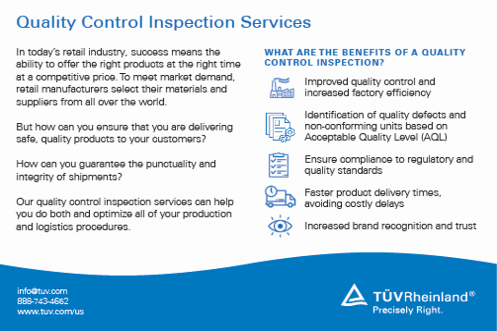 TÜV Rheinland has a vast portfolio of services at each step of the supply chain. As a trusted partner, we have both the technical expertise and the global reach to support your organization achieve its compliance and quality goals.