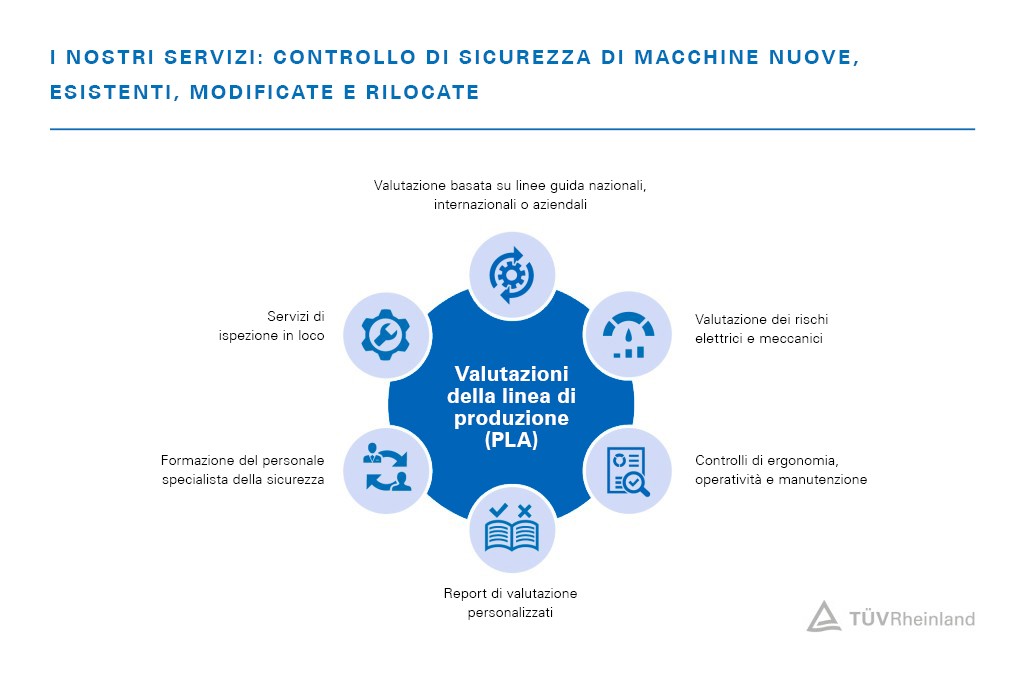- Il test delle macchine installate o delle intere linee è il pilastro della sicurezza delle macchine. I nostri PLA costituiscono un programma di test olistico che include: