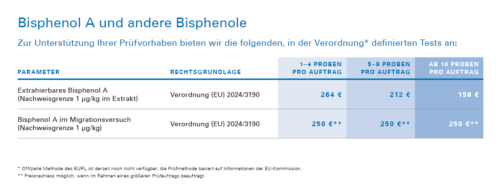 Weitere Informationen zu den neuen EU-Vorgaben zu Bisphenol A und anderen Bisphenolen finden Sie in unserer aktuellen Kundeninformation Verbot von Bisphenolen in Lebensmittelkontaktmaterialien - Verordnung (EU) 2024/3190 Download