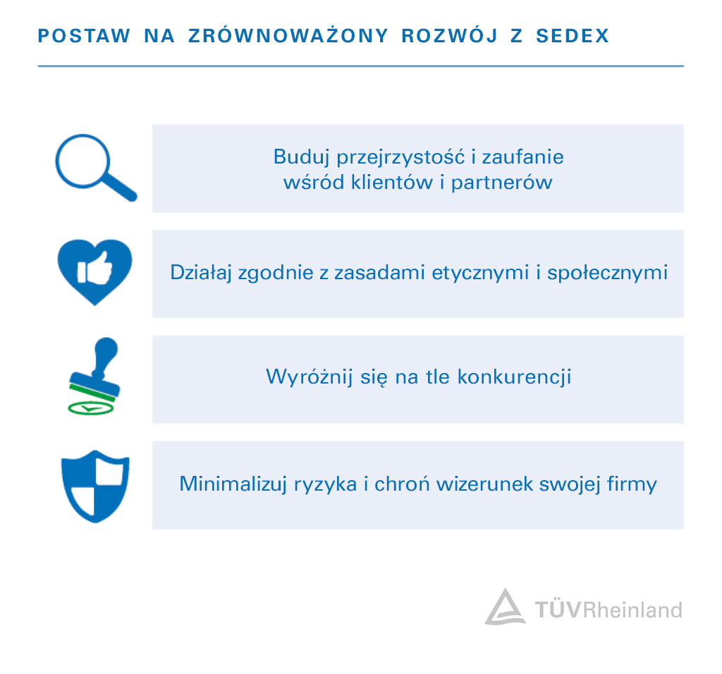Supplier Ethical Data Exchange (w skrócie Sedex) to uznana na całym świecie platforma internetowa, która umożliwia swoim członkom udostępnianie klientom i partnerom szczegółowych informacji o działaniach firmy w zakresie odpowiedzialności społecznej i etycznej. Jej celem jest zwiększenie przejrzystości oraz wspieranie zrównoważonego rozwoju w całym łańcuchu dostaw.