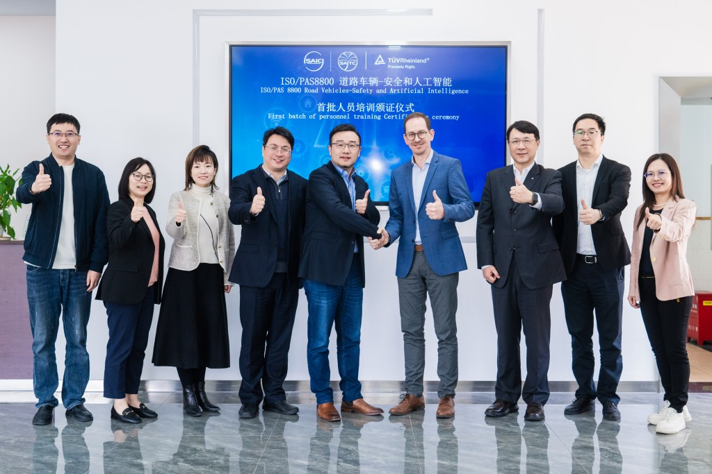 4月3日,国际独立第三方检测、检验和认证机构德国莱茵TÜV大中华区(简称“TÜV莱茵”)携手上海汽车集团股份有限公司培训中心(简称“上汽培训中心”)开展了为期2天的ISO/PAS 8800《道路车辆-安全和人工智能》标准培训,并为首批学员颁发了培训证书。此次培训旨在帮助上汽集团相关技术人员全面掌握ISO/PAS 8800标准,提升人工智能(AI)安全管理能力、规避技术风险,助力上汽集团储备拥有AI协同开发能力的人才,增强企业核心竞争力。