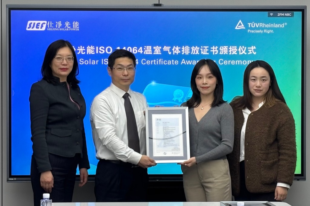 TÜV莱茵为仕净光能颁发组织层面碳核查声明及产品碳足迹核查声明