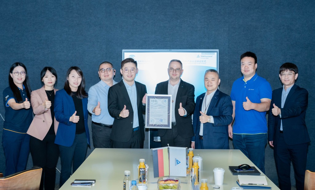 永德利科技董事长廖德南博士、副总经理廖兆雄,TÜV莱茵电子电气产品服务全球副总裁郝福来(Frank Holzmann)、大中华区电子电气产品服务区域总经理刘喜强等双方代表出席了在上海举行的颁证仪式。