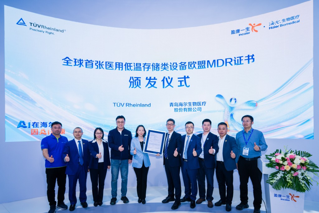 TÜV莱茵为海尔生物医疗医用低温存储设备颁发MDR公告机构证书