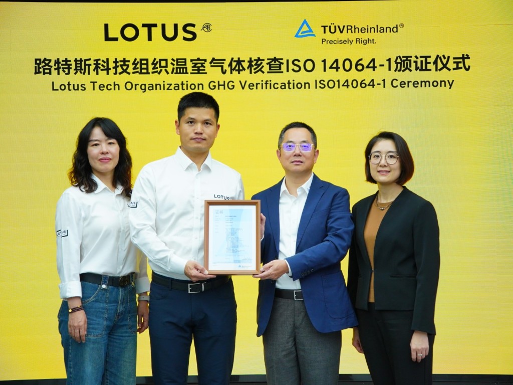 TÜV莱茵为路特斯科技及路特斯全球智能工厂颁发ISO 14064-1组织层面温室气体核查证书