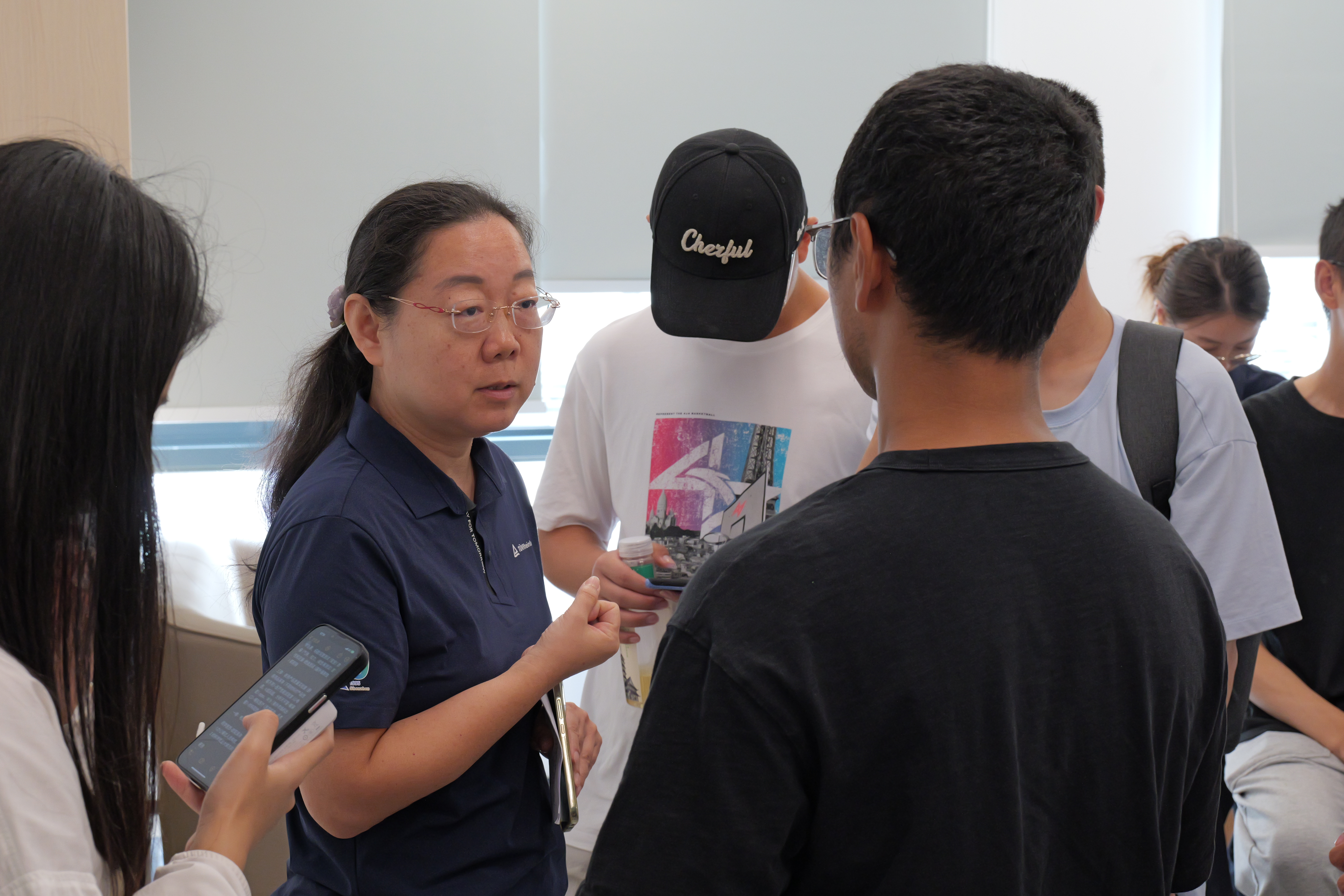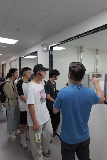 随后,深圳理工大学师生,在TÜV莱茵工程师的带领下开启实验室观摩见习。TÜV莱茵工程师结合实际案例,从材料检测的技术原理、核心设备操作逻辑,到行业应用中的标准要求,对重点实验室进行了详细讲解;通过展示“化学品专用存放地板”和“专业防护装备配置”等实验室细节,让师生直观感受行业对安全、规范的高标准。此次参与见习的学生们也通过办公环境、HSE(Health, Safety and Environment,健康、安全、环境)规范等细节中深切感受到TÜV莱茵“以人为本、安全至上”的人文温度,并分享道:”今天才知道TÜV莱茵覆盖了衣食住行以及商业的各个环节,期待未来还能有更多走进企业观摩、学习认知落地的机会。”