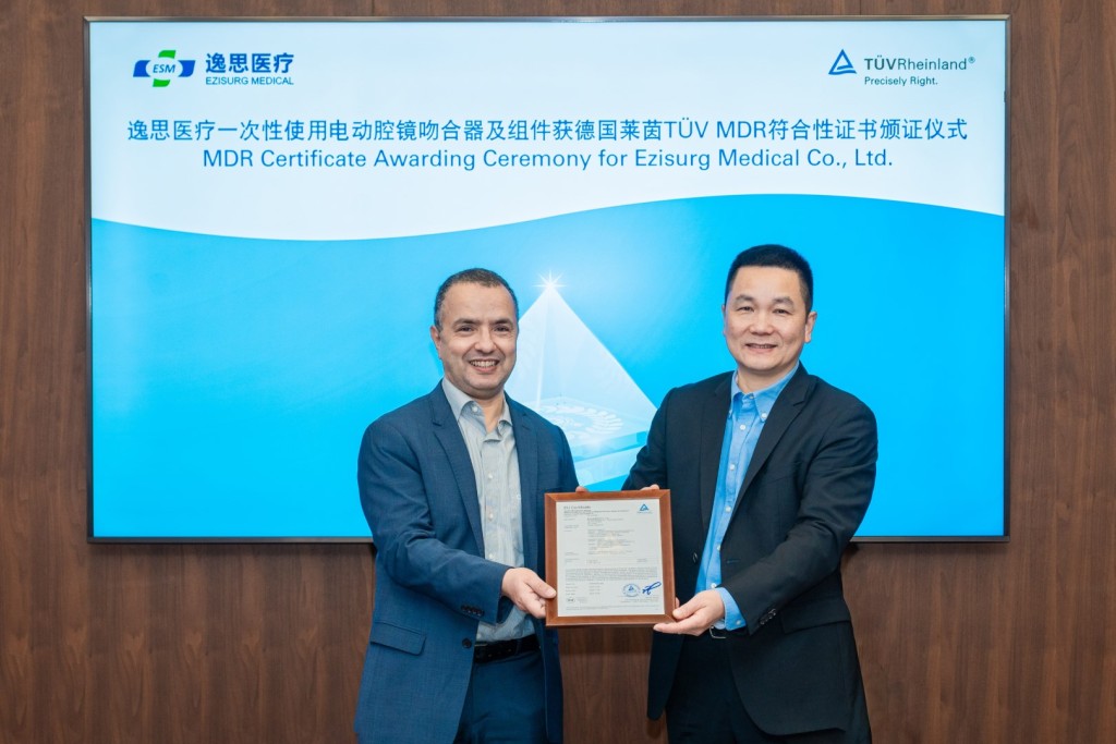 Recently, TÜV Rheinland, an international independent third-party testing, inspection and certification services provider, issued an MDR certificate of conformity to Ezisurg Medical Co., Ltd. (referred to as " Ezisurg Medical") for its "Disposable Powered Endoscopic Stapler and Cartridge" (referred to as "Powered Endoscopic Stapler") based on REGULATION (EU) 2017/745. This is the first MDR certificate issued by TÜV Rheinland for this type of product in Greater China, meaning this product can smoothly enter 27 EU countries, further enhancing Ezisurg Medical's international competitiveness.