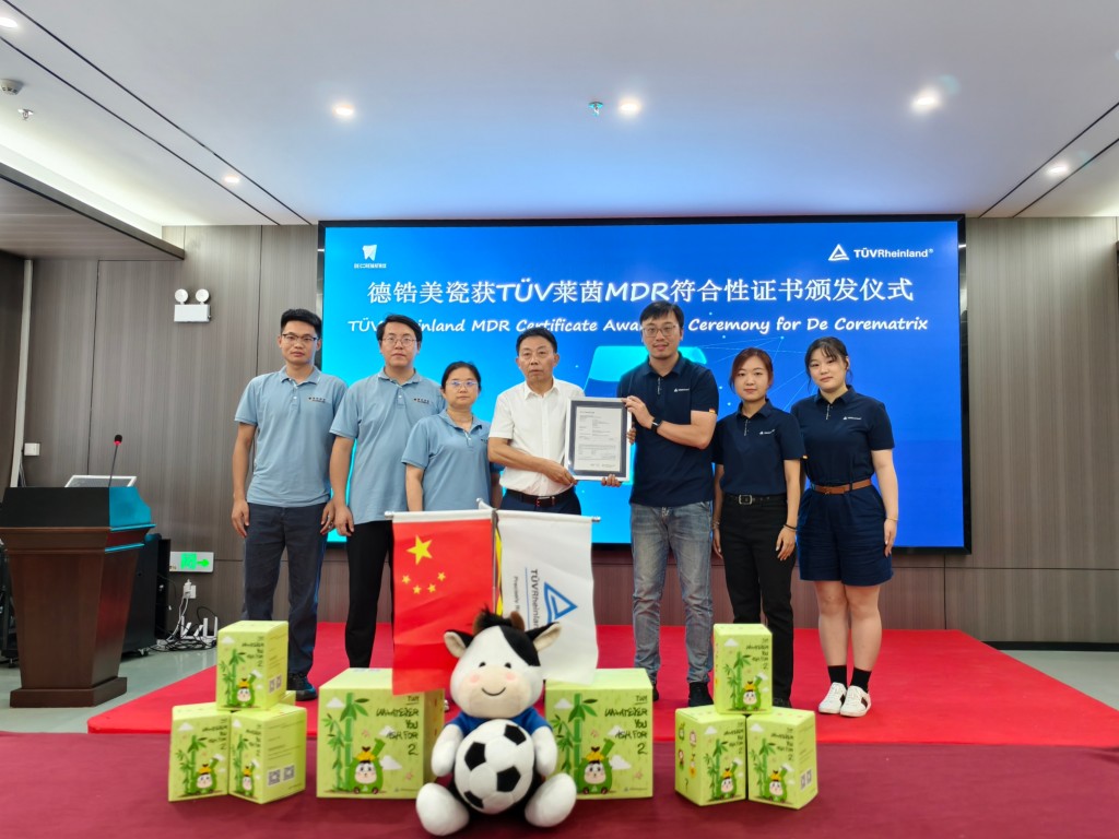 On August 15, 2025 – TÜV Rheinland Greater China, a leading international independent testing, inspection, and certification organization, has issued a Notified Body certificate under the European Medical Device Regulation (Regulation (EU) 2017/745, MDR) to De Corematrix Co., Ltd for two of its Zirconia Dental Ceramics Model CMW and CMC. With this certification, De Corematrix becomes one of the few domestic manufacturers of zirconia dental materials to meet the stringent market access requirements of the European Union.