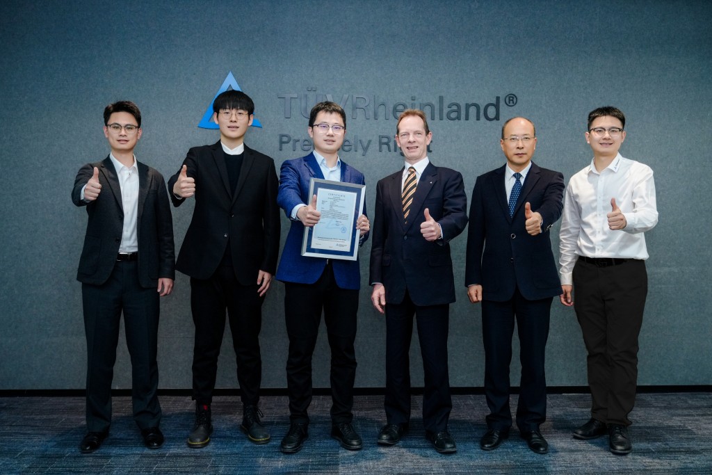 Jiaji Zhou, CEO of XYZ Robotics, Qing Xu, Senior R&D Manager of XYZ Robotics, Frank Piller, Global Vice President of TÜV Rheinland Solar & Commercial Products, and Shu Xu, Sub-Regional Sales Manager of TÜV Rheinland Greater China Business Stream Products, along with other representatives from both sides, attended the certificate presentation ceremony.