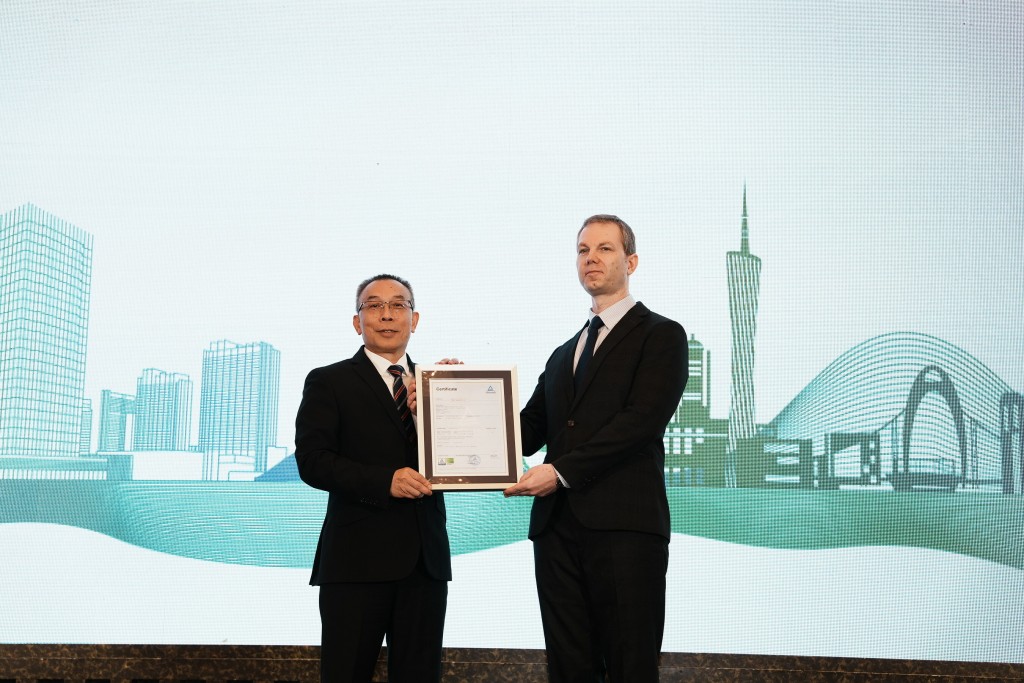萬事泰董事長梁桂泉、執行總裁劉炳耀,TÜV萊茵深圳公司執行董事姜宏、TÜV萊茵大中華區紡織品、玩具及化學服務副總經理符瑞澤(Bernd Fritzsche)等雙方代表出席了頒獎典禮。