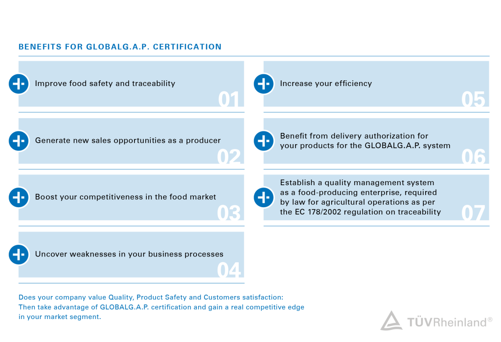 With GLOBALG.A.P. certification from TÜV Rheinland, you can: