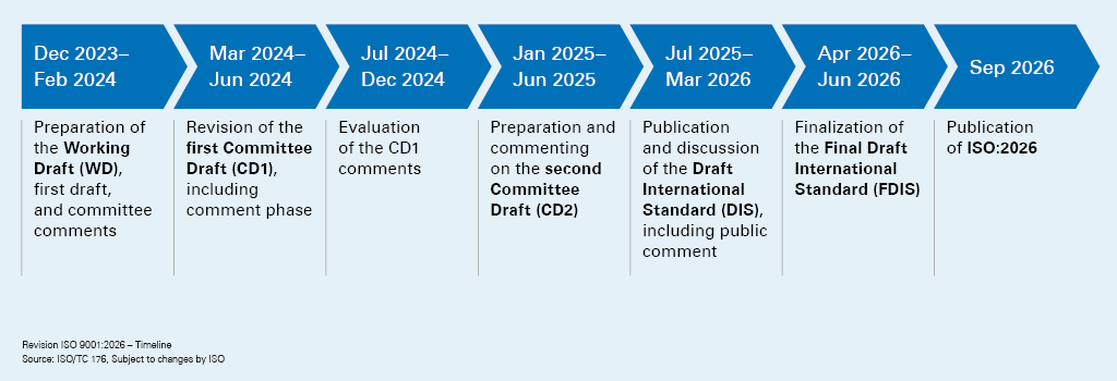 In summer 2023, the ISO Technical Committee ISO/TC 176 SC 2 decided to revise ISO 9001:2015. It is now confirmed that the new version will be published in 2026. We will explain which changes are planned, what impact the updates will have on companies, and how you can best prepare for them.
